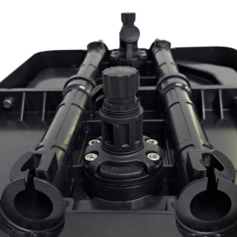 • Soportes integrados: La mesa incluye 2 puntos de fijación FASTEN en los laterales. Esto te permite insertar directamente otros accesorios de Borika (cañeros, soportes para GoPro, soportes de sonda, etc.) sin ocupar espacio en los raíles principales de la embarcación.