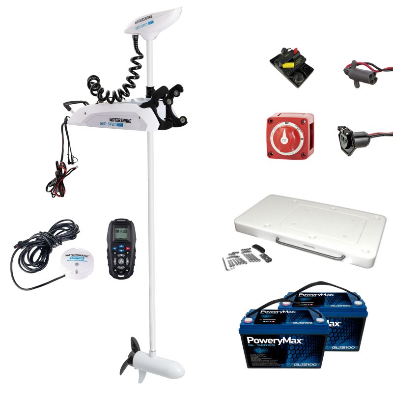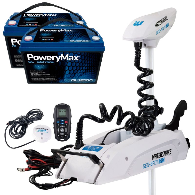 - Motor eléctrico de pesca Watersnake Geo-Spot GPS 24V 80 lbs con eje de 78" para agua salada.