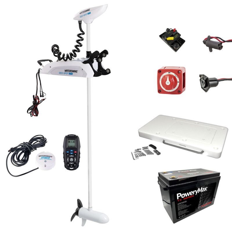 - Motor eléctrico de pesca Watersnake Geo-Spot GPS 24V 80 lbs con eje de 78" para agua salada.