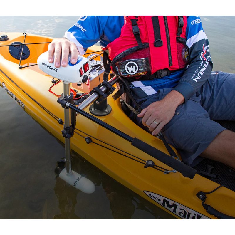 El Watersnake ASP T24 es un motor eléctrico para la instalación en el espejo popa, para embarcaciones de pequeño tamaño como kayaks, pato o canoas. También puede ser utilizado como motor eléctrico auxiliar. Ligero y versatil, posee una potencia de empuje de 24 lbs. a 12 voltios. Posee un mango retráctil para mayor comodidad a la hora de manejarlo tanto para la pesca en kayak, pato o canoas de pesca o paseo. Válido para cualquier embarcación de pequeño tamaño.